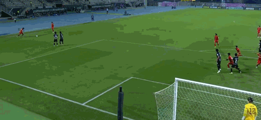 第20分钟,越南U23任意球被顶出,阮泰山抽射偏出